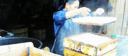 具体做法是,取粳米、籼米按一定比例混合浸泡,再掺入大量野外采摘来的一种叫“水曲”的小草磨浆。浆磨好后,入锅熬至半熟起锅,在案板上搓揉成质地均匀的米团,之后将大米浆团分成若干一个半鹌鹑蛋大小的小米浆团,捏成薄皮,包上馅,上笼屉蒸熟后便可以食用,故又有人称其为“米饺”。春社这天的包糍馅是非常讲究的,要用上好的冬笋、熏肉、熏豆干、芋头、香菇、葱等做馅,蒸出来的包糍,油而不腻,一口下去满嘴生香,令人食欲大开。