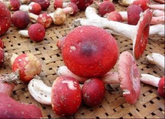 红菇又名正红菇、真红菇、葡酒红菇,是一种和楮、栲等树木的根系共生的菌根真菌。 红菇身含有5种多糖、16种氨基酸和28种脂肪酸。多糖含量约为2.47%,其中单糖和寡糖占总糖的33.9%,氨基酸含量14.7%,其中人体必需、半必需氨基酸占氨基酸问题的54.4%。红菇具有治疗腰腿酸痛、手足麻木、筋骨不适、四肢抽搐和补血、滋阴、清凉解毒及治疗贫血、水肿、营养不良和产妇出血过多等疾病,还具有增加机体免疫力和抗癌等作用,经常食用,可使人皮肤细润,精力旺盛,益寿延年。