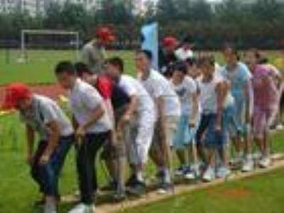 项目简介:11名队员两脚分别踩着两根长3.6米宽0.15米的木板,手提两根与木板连接的绳子,按照教练的命令前进或后退。